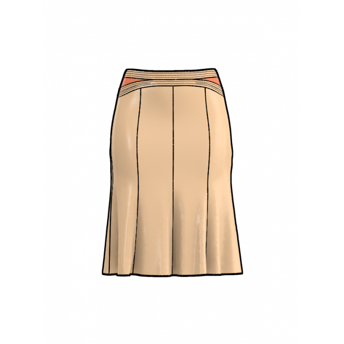 프론트, 백 웨이스트를 3단 절개한 요크 스커트.