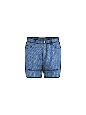 남성 앞 라운드포켓 뒤 아웃포켓 뒤요크 스트레치 데님 반바지입니다.